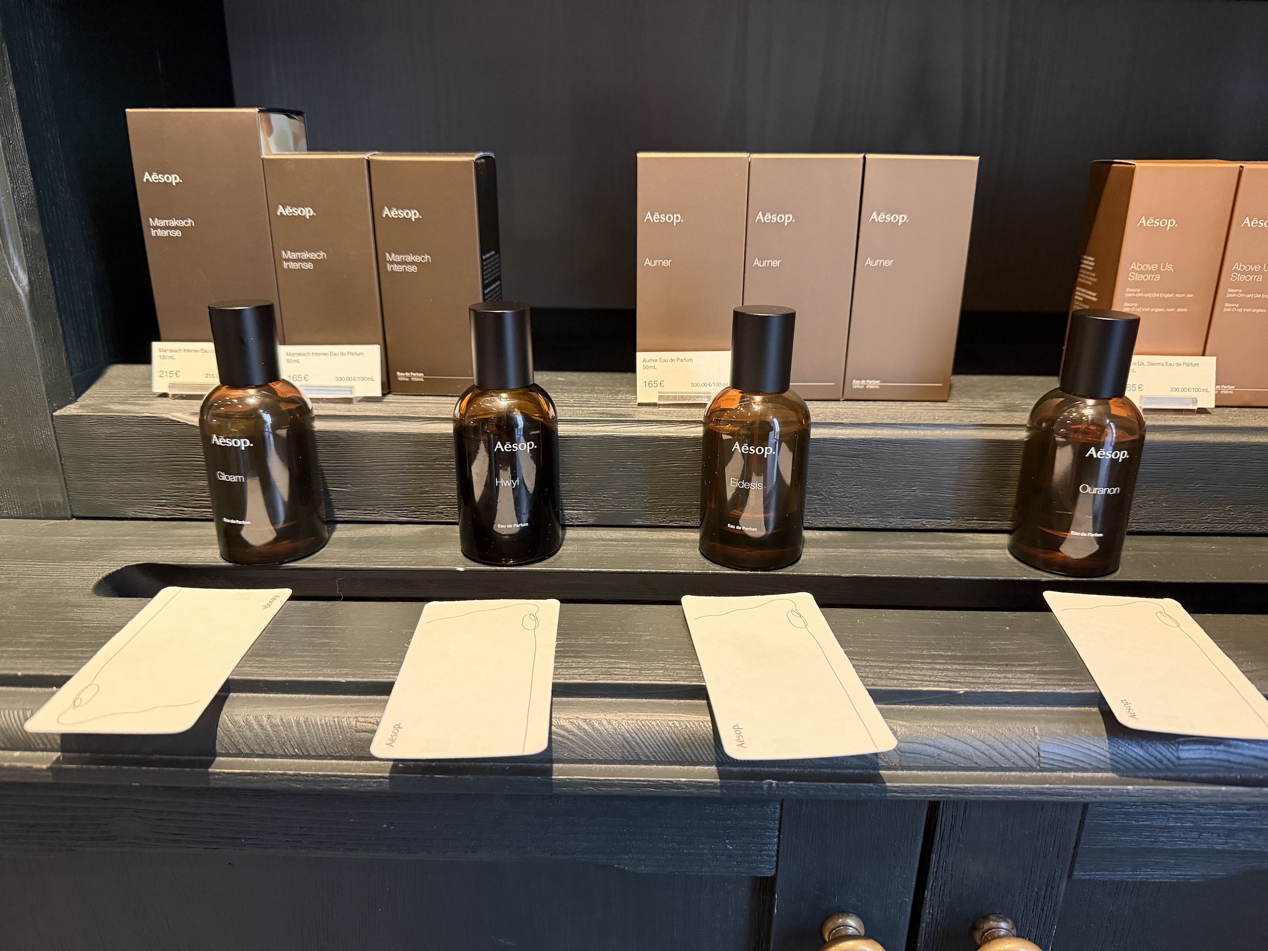 Je n'étais jamais entré dans un Aesop. Car les prix plus qu'élevés me maintenaient toujours à distance. Et je l'ai fait, donc, pour offrir des cadeaux. L'un à mon grand frère, l'un à ma petite sœur.