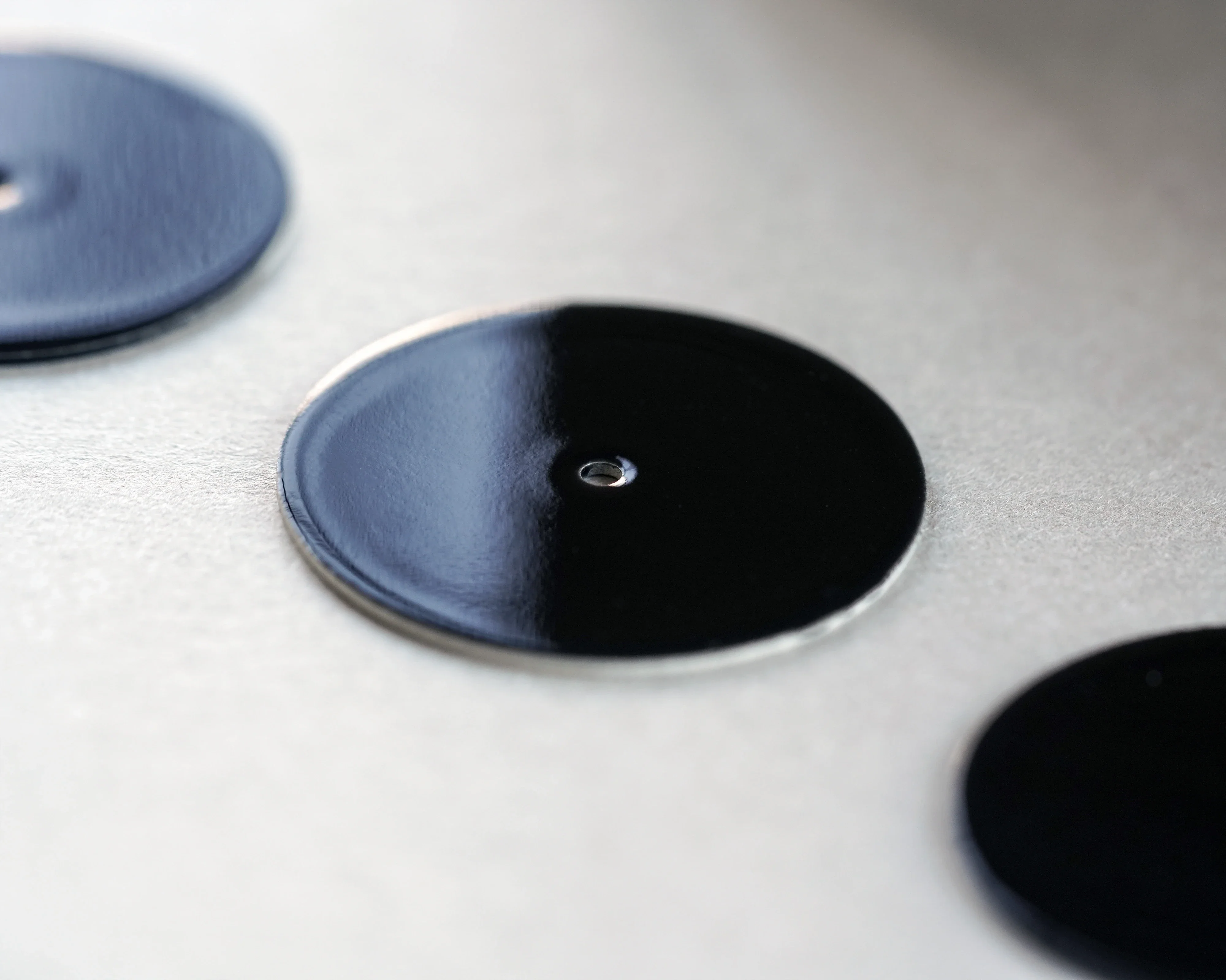 Les aiguilles et les chiffres dorés sur le contour. Et le cadran noir en porcelaine. Vraie porcelaine. Il a été pressé, émaillé et cuit à haute température, fabriqué artisanalement en interne par une artiste céramiste à Stoke-on-Trent, une ville d'Angleterre. Et, même si là, on ne voit pas bien, je pense qu'il doit avoir une texture, une réflection particulière de la lumière qui doit encore plus sublimer l'objet.