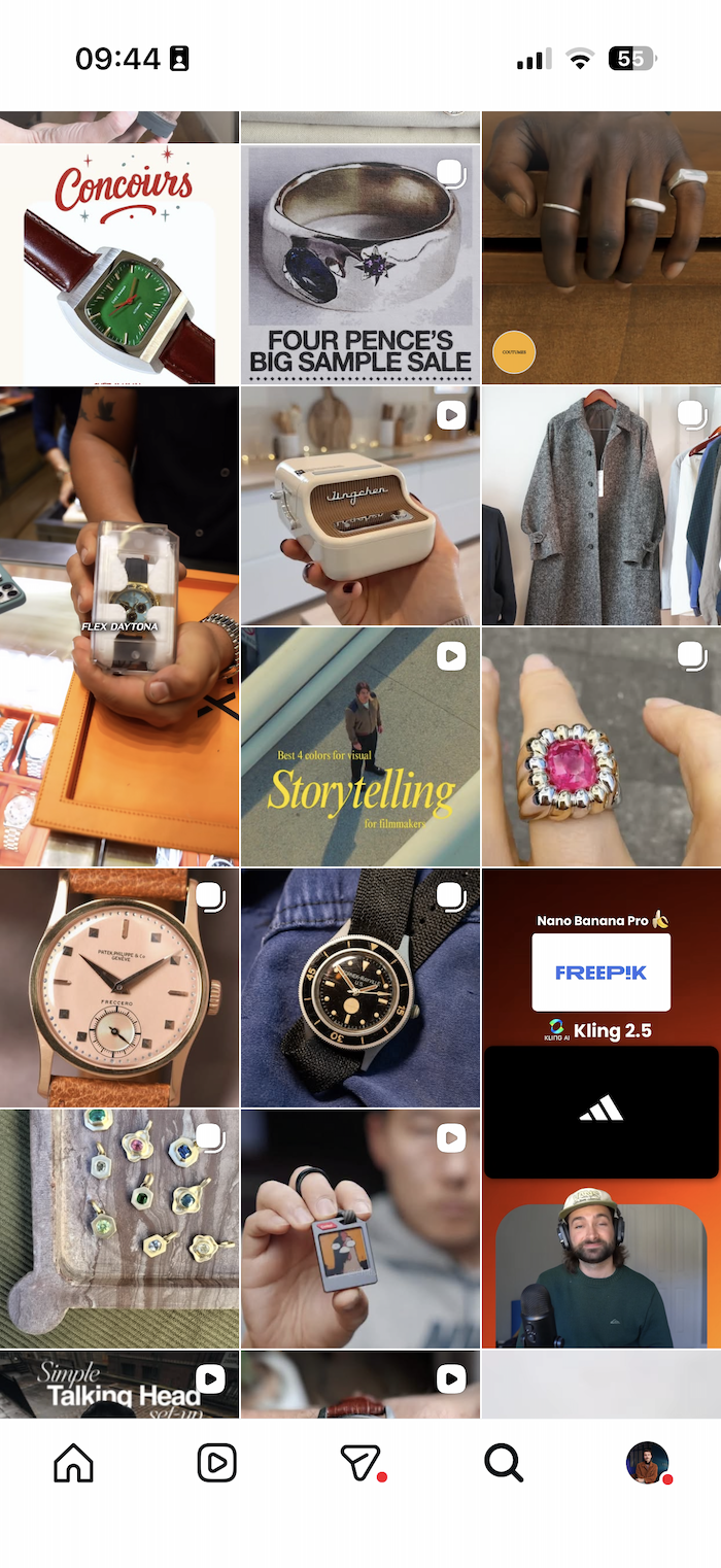 Et justement, tout à l'heure en scrollant sur Instagram, j'ai enregistré un certains nombre de posts. Et tout de suite après, j'ai pensé à la newsletter. Je me suis dit que je n'allais pas garder ça secret, que j'allais vous montrer quelques-unes des pépites que j'enregistre. Sans rire, cette section enregistrement pour être un compte Instagram à part entière, où on viendrait pour de la curation de beaux objets, beaux vêtements, odes aux savoir-faire, scènes de cinéma, meubles de designers…