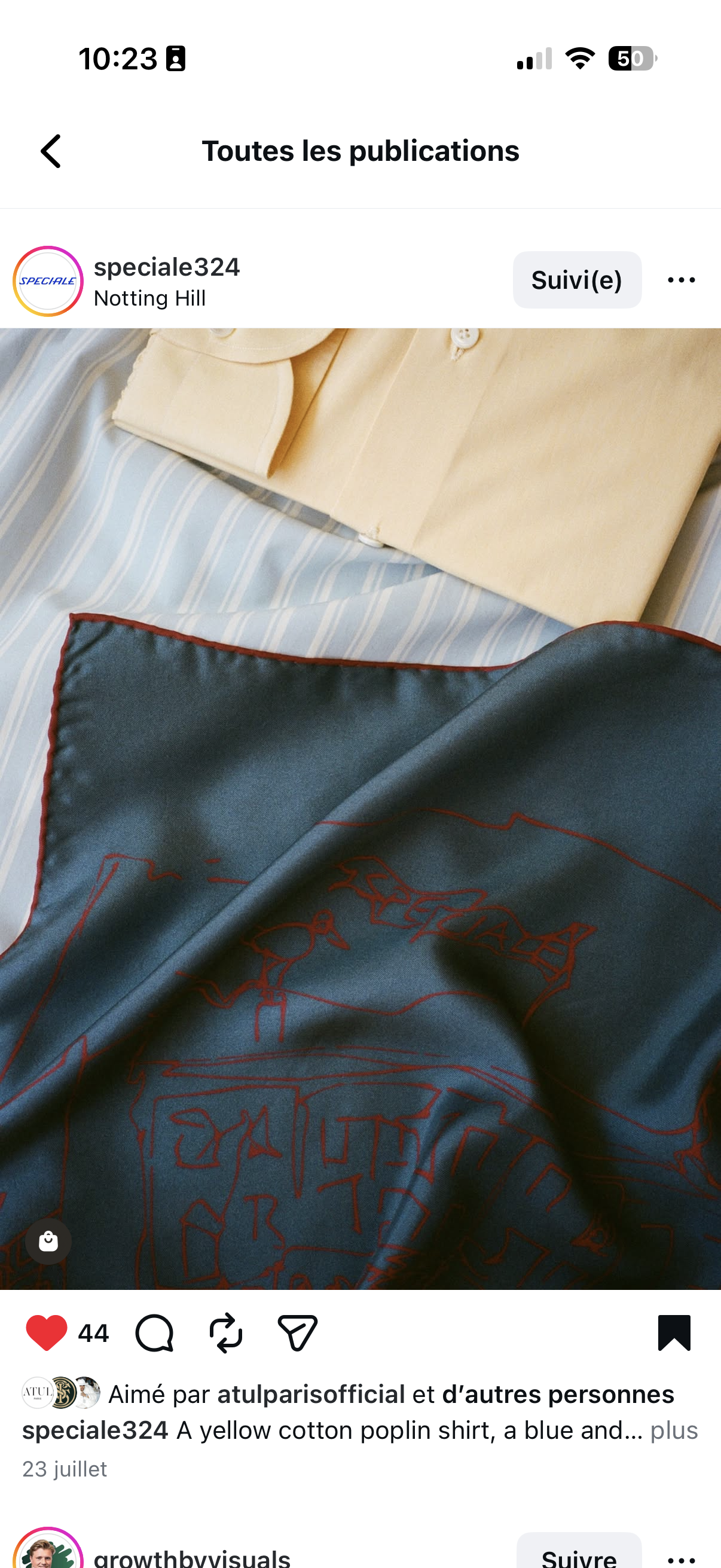 Je vous le dis, un de ces quatre, je lancerai mes propres foulards. Ça me permettrait d'avoir un stock illimité de couleurs, à pouvoir mettre dans n'importe quelle tenue. Je ne sais pas si je serais plus heureux mais je serais plus équipé en tout cas.